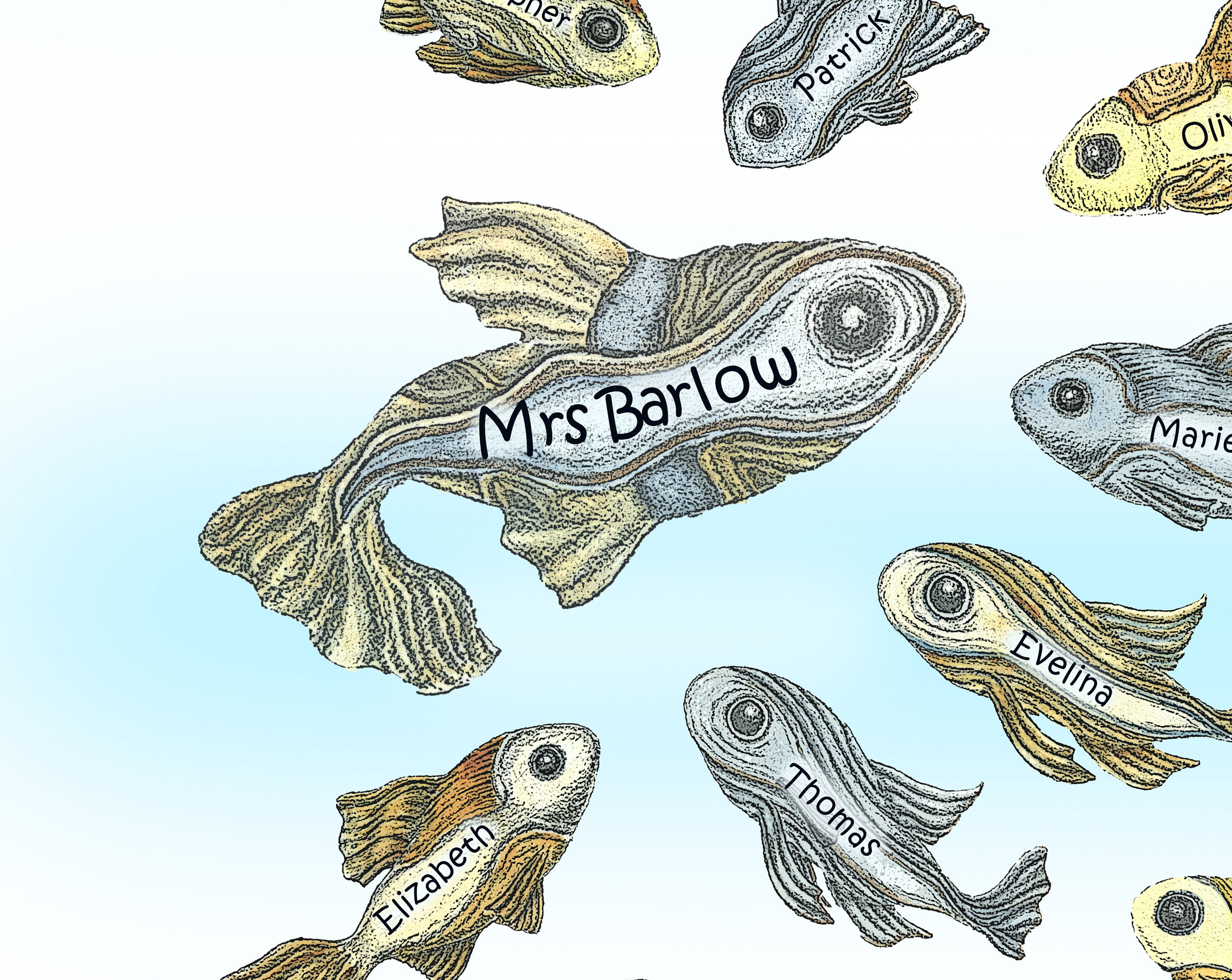 I will then put together a proof so that you can check the placement of names and we can switch any fish around where necessary. You can also use an alternative font, everything is customised for you.